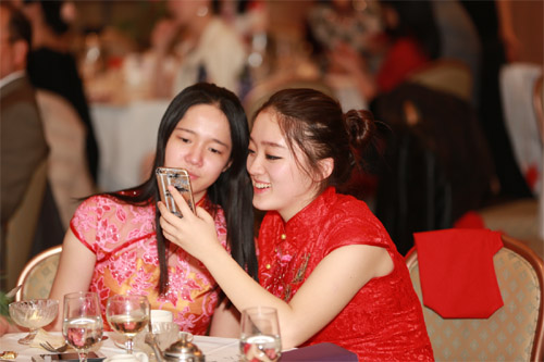 年会在西北郊( Rolling Meadows, IL)的Meridian Banquets 酒店举行,年会包括晚宴、文艺联欢、舞会三大部分。这是一次芝加哥郊区华人社区交流联谊的盛会,各界朋友盛装而来,新老朋友相见欢,处处洋溢节日的热闹范围。旗袍会郊区各组佳丽,为晚会精心准备了精彩的歌舞与旗袍秀节目。由阳光舞蹈团带来的双人舞,为当晚活动拉开帷幕。旗袍会八姐妹的舞蹈《花儿为什么这样红》,旗袍会西北郊组的张静芬沪剧清唱《金丝鸟》,古筝演奏《悠弦丽影》,女生小组唱《掌声响起来》,精彩节目,掌声热烈。旗袍会年会,当然少不了旗袍秀,精心的编排的《旗袍雅韵》,再次展现中国传统旗袍的魅力,展现东方女性的风韵。