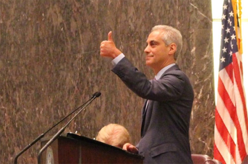 2015年10月,芝加哥市长Rahm Emanuel 发表2016财政预算案演说 (DNAinfo Chicago)