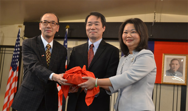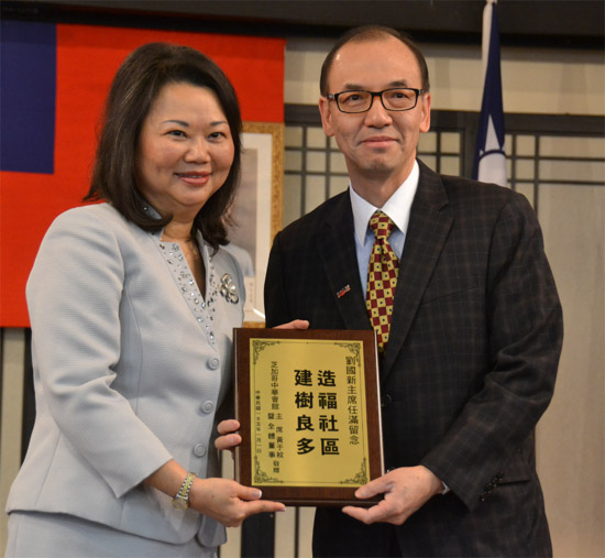台北经文处何震寰处长,芝加哥华侨文教服务中心主任王伟赞当日均发表热情洋溢的致辞,向中华会馆新届职员的就职表示热烈祝贺。何震寰处长表示,黄于纹女士成为中华会馆百年历史上首位女主席,可喜可贺,相信未来两年中中华会馆会务必将得到进一步发展。何处长还特别感谢卸任主席刘国新,在过去两年中对推动侨社的繁荣与团结作出了极大贡献。