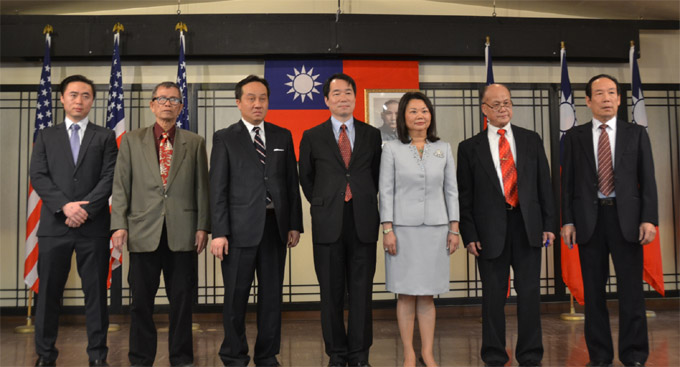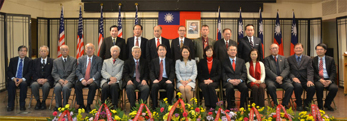 中华会馆新届职员与台北经文处何震寰处长(中)合影