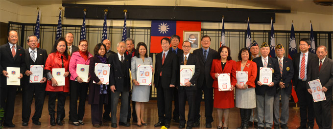 侨教中心主任王伟赞,当天特别宣读了侨务委员长陈士魁恭贺黄于纹就任中华会馆主席的贺词。陈士魁委员长在贺信中指出黄于纹女士荣膺中华会馆主席,“具见服务侨界之热忱与绩效,深受肯定,实至名归”,并希望她“展布长才,引领会务壮盛发展”。王伟赞主任当天还带来侨委会授予的众多奖牌,感谢大家积极参与和支持2015年芝加哥双十游行。包括中华会馆、芝城至孝笃亲公所、美中三民主义大同盟、华裔退伍军人会在内侨团代表领取了奖状。