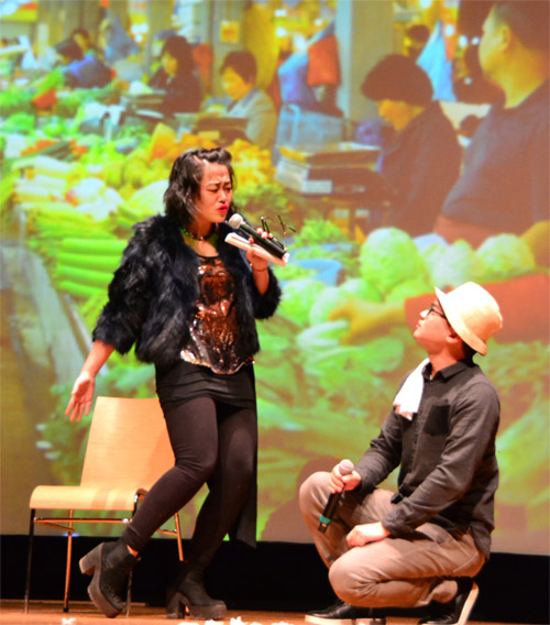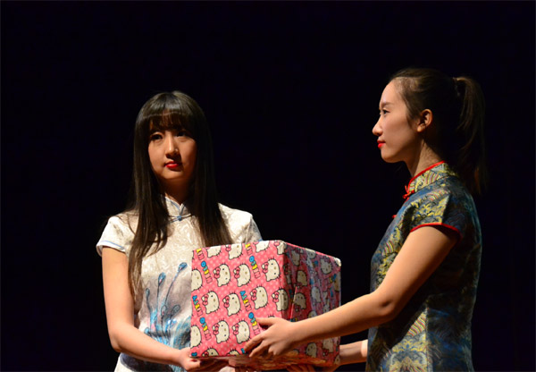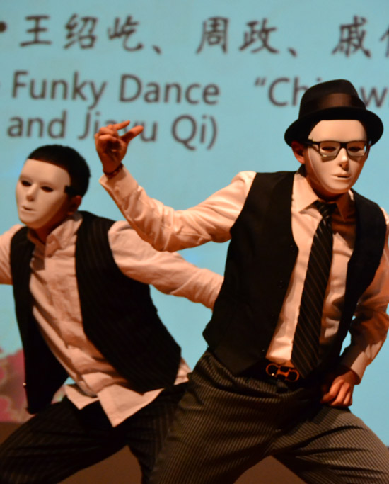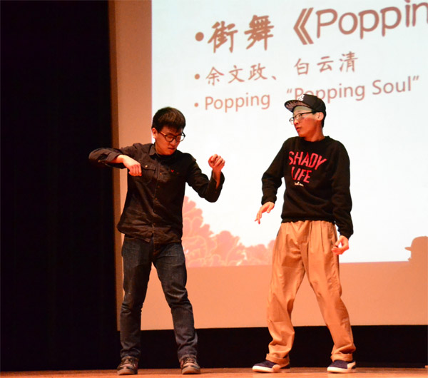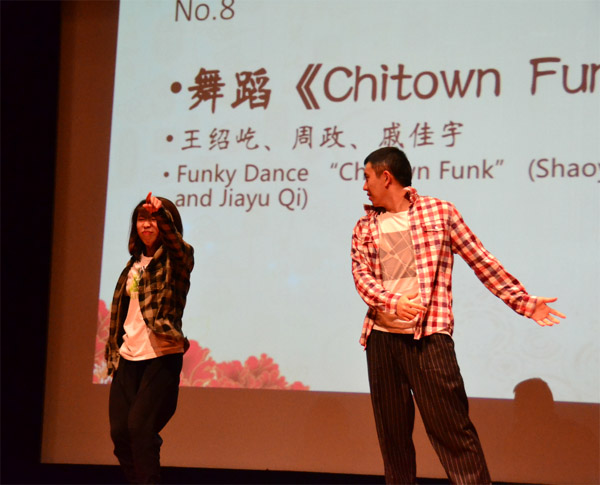 作为本次才艺秀的第一个小高潮,由芝加哥风车剧社带来的相声《满腹经纶》,引经据典、构思巧妙,通过王宁和许慧两位同学诙谐幽默的表演,精心设计又不着痕迹抖的“包袱”平均每3分钟就逗得大家前仰后合、捧腹大笑,现场反响极其热烈。两位同学的精彩表演不时地引起现场观众叫好声不断,喝彩声连连。