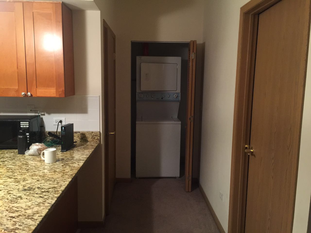 月租: 500 包水, 室内有洗衣机和烘干机,含室内停车位。