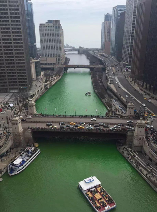 染绿芝加哥河,是芝加哥庆祝圣派翠克节的特色
