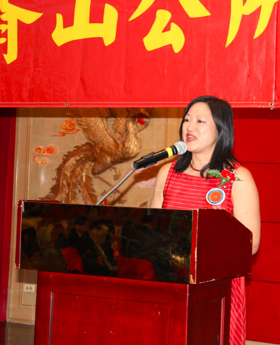 随后,伍胥山公所妇女部代表黄伍佩玲上台讲话,她回忆了黄伍两家历来团结友爱的传统,并表示两家人要在未来共进退,同发展,继续发扬爱国爱乡的优良传统,并为祖国和平统一以及中美友谊的发展贡献自己的力量。