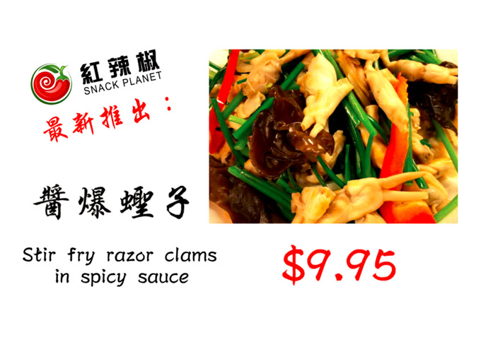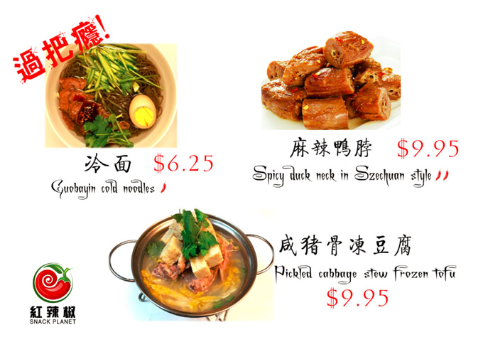 此次推出的新菜式有冷面,麻辣鸭脖等广受欢迎的小吃,还有咸猪骨冻豆腐煲和酱爆圣子,鲜美可口,欢迎大家前来品尝。