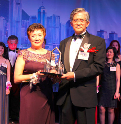 随后,各位董事,会长,名誉会长等香港华协会董事局成员在主持人的介绍下一一上台,同时,为表示名誉会长朱庆龙在过去一年内对香港华协会的贡献与支持,现任会长赵伊龄向朱庆龙颁发“特别感谢奖”。