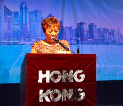 当晚宴会在会长赵伊龄的致辞中拉开帷幕。会长表示,八年前当她刚加入香港会时,只是想找志同道合的朋友联谊聊天。当成为其中一员之后,才知道香港会是一个多元化。没有政治立场的非盈利团体。香港会每年举办这样多丰富多彩的团体活动是为了凝聚社区力量,希望年轻的新成员能够秉承香港会服务社区的精神,带领香港会走向更美好的明天!