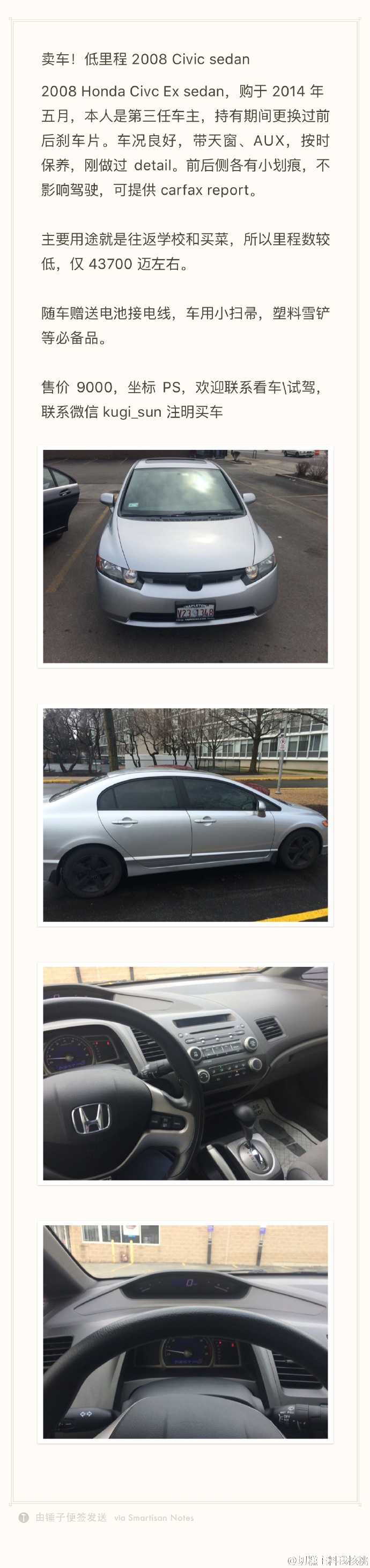 出一台低里程2008 Honda Civic,坐标芝加哥PS,详情见图.