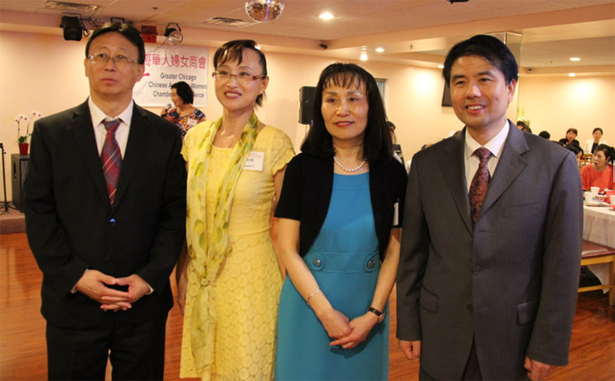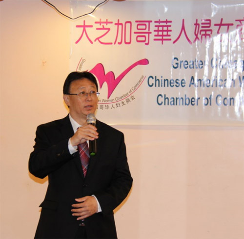 随后,芝加哥总领馆商务组参赞邹小明上台讲话。邹参赞说,“作为一名身兼多职的女性,无论是照顾家庭还是征战商场都需要占用极大的精力,而华人妇女商会的各位女精英用自己的能力展现了女性的力量,为此我向你们表示敬意!”邹参赞还表示,中国与美国贸易往来发展势头强盛,仅今年第一季度两国进出口总额就高达150亿美金,而这样的成就背后,少不了妇女商会所做出的杰出贡献,希望商会成员能够作为中国贸易的代表,向更多美国朋友表达中国希望发展的意愿,借助女性的力量帮助两国贸易达成双赢。芝加哥总领馆商务组也愿意为妇女商会的成员提供一切力所能及的帮助。