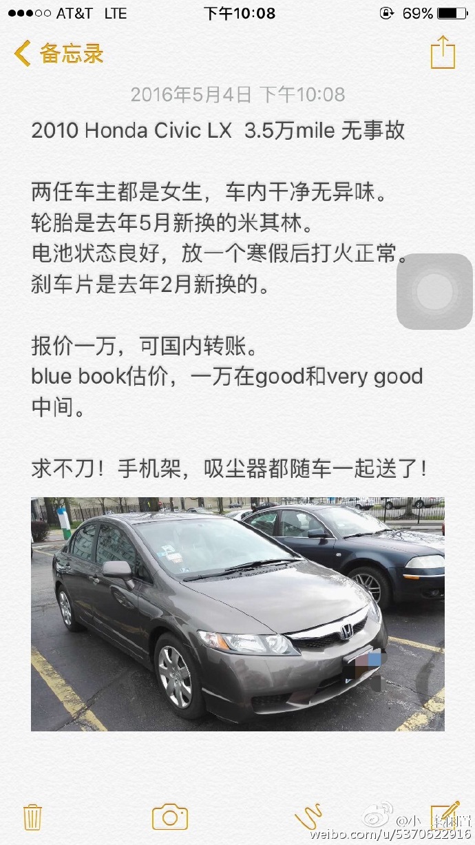 » 【微博转发】卖车,2010 Honda Civic LX, 3.5万mil
