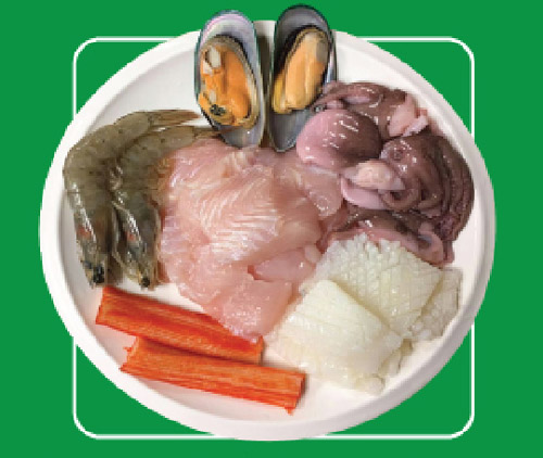 套餐精选:有头虾、龙利鱼片、鲜墨鱼、鲜八爪鱼、淡菜、蟹柳条