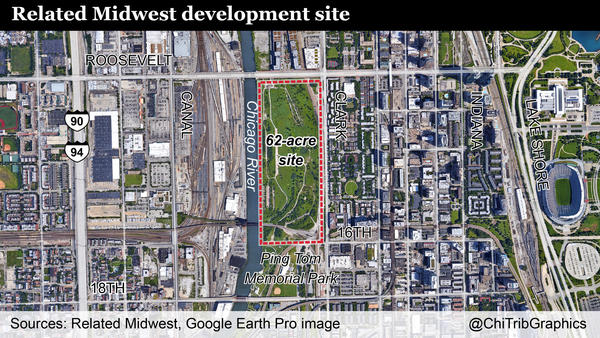 中国城以北的62英亩空地示意图 (photo: Chicago Tribune)