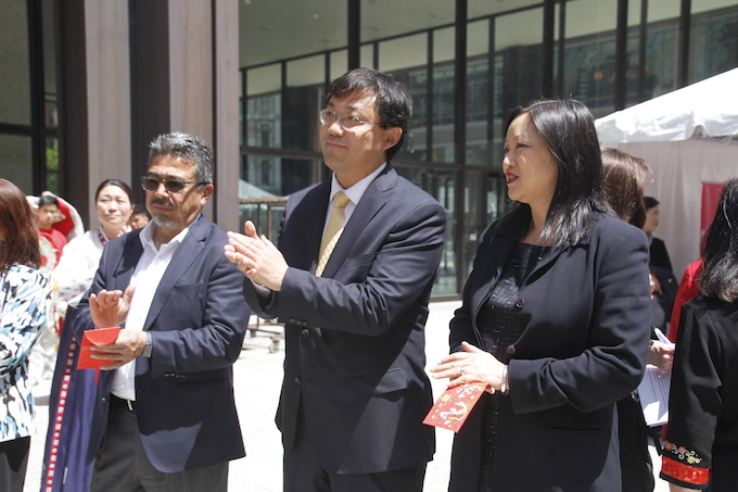 为庆祝第十五届亚裔文化周的到来,大芝加哥地区亚裔联合会5月16日于芝加哥市中心戴利广场(DaleyPlaza)隆重举行一年一度的亚裔文化周开幕仪式。伊州州务卿杰西怀特(JesseWhite)、25区区长丹尼尔山古尼提(Danielsolis Alderman)、伊州议会第二选区众议员民主党候选人马静仪(TheresaMah)、第十五届亚裔文化月主席安娜邵恩(AnneShaw)等地方政府官员,亚裔代表等数百人参加了当天的活动。