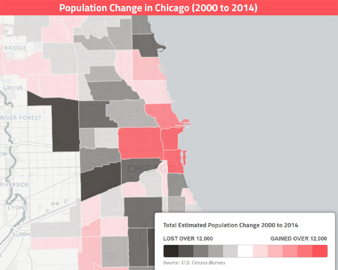 反映芝加哥市人口增减态势的统计图, (DNAinfo Chicago 图片)