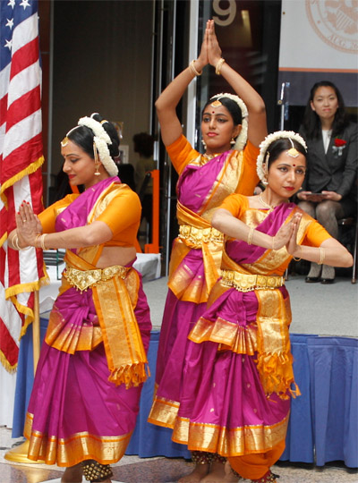 芝加哥印度裔社区舞蹈团队在亚裔月庆祝活动上表演