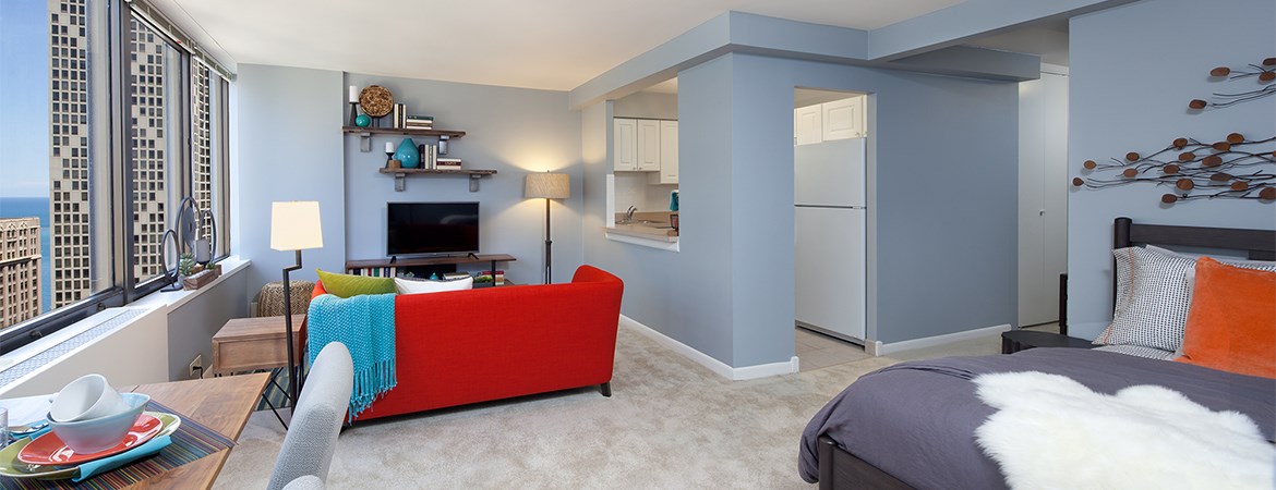 步行五分钟可到达密歇根大道及湖边,十分钟到达Loop,离西北downtown campus商学院法学院医学院步行5分钟,芝大商学院的downtown校区步行10分钟。公交线路多,周围餐馆众多,公寓楼下就是711和Target,步行五分钟内有Wholefoods,treasure island等大型食品超市,生活超级方便,治安很好。