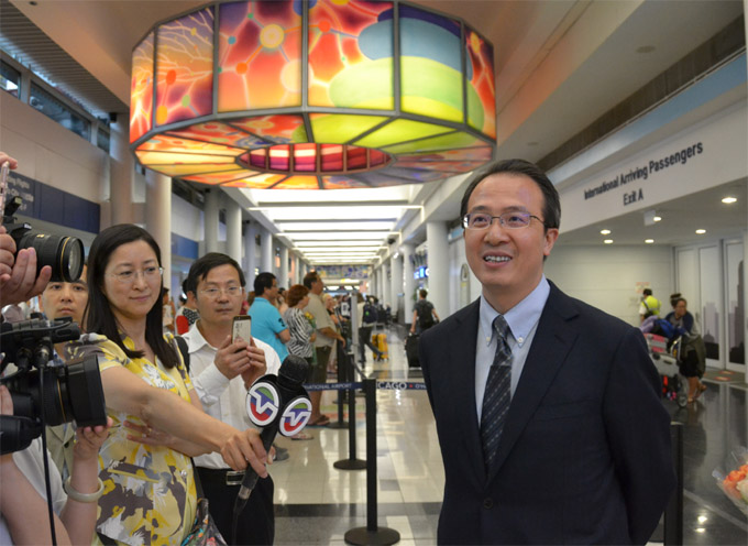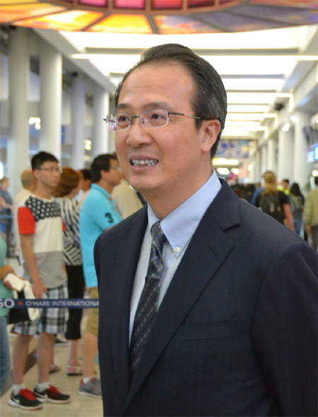 芝加哥侨学网报道】原外交部发言人、中国驻芝加哥总领事馆新任洪磊,7月22日抵达芝加哥赴任。洪磊总领事在机场接受芝加哥地区中文媒体采访,并指出他是为友谊而来,为合作而来,为广大侨胞、留学生服务而来。