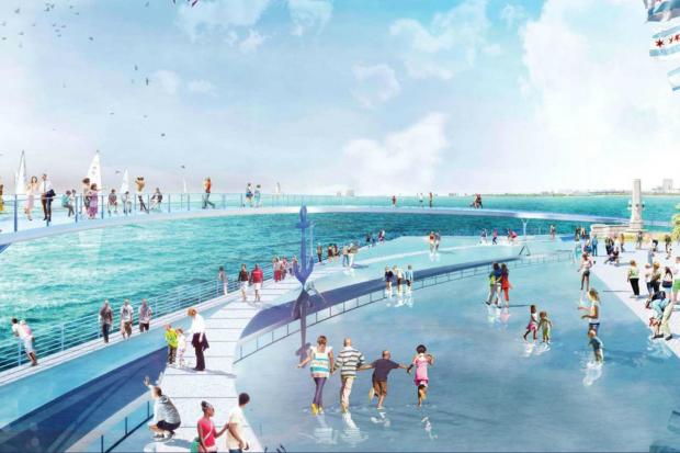 芝加哥侨学网综合报道】芝加哥海军码头庆祝100周年,大手笔不断。在全新摩天轮投入运营之后,本周二又公布了众多翻新和扩建计划,包括新建海军码头入口处“音乐会草坪”、“湖镜”戏水池、水晶花园翻新等,不过其中最炫酷的,当属“大湖观景台”(Lake Overlook)。