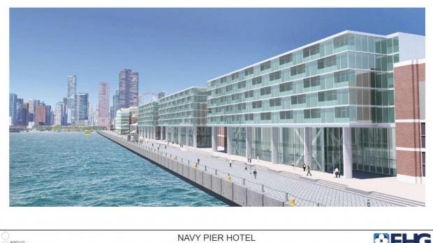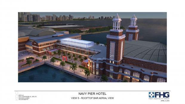 在新建计划中,海军码头新酒店的效果图也在当天的会议上公布。这座新酒店,位于海军码头南侧的船码头附近,紧邻Festival Hall。目前尚未确定酒店名称尚未确定,但酒店的运营管理方将是著名First Hospitality Group, 该集团是芝加哥著名酒店The Wit的开发商。