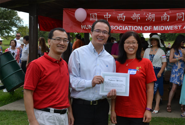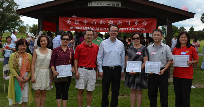洪磊总领事表示,他在现场感受到湖南同乡会的温馨大家庭氛围,他非常高兴能加入湖南乡亲们的夏季联谊活动。洪磊说,湖南自古人杰地灵,人才辈出,芝加哥地区的湖南老乡们在侨界十分活跃,参加侨社活动,促进中美友好交流,弘扬中国文化,各项活动有声有色。