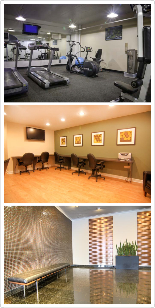 楼内有business center with free Wi-Fi,设施齐全的健身房,洗衣房,personal & bike storage,砖石结构隔音效果好,因此可以养猫养狗。