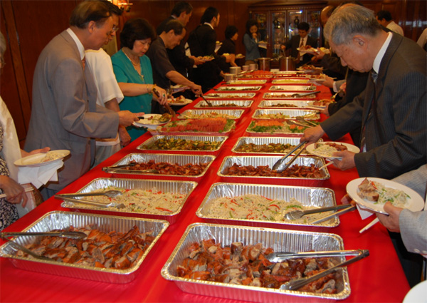 领事馆估计没有添置那种自助餐馆用的保温台,又要做成自助式,