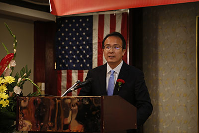 洪磊总领事首先代表中华人民共和国国务院侨务办公室热烈祝贺汪兴无当选第十届华联会主席。国侨办表示,大芝加哥地区华侨华人联合会自成立十八年以来,广泛团结服务大芝加哥地区的侨胞,弘扬了中华文化,推动了中美交流与合作。希望华联会新一届理事,协同全体会员,秉承章程,加强团结协作,为维护侨胞合法权益,促进华人社团的发展,促进中美交流合作与友好往来。洪磊总领事表示,华联会汇集了大芝加哥地区的众多的侨社,凝聚了各方力量,组织了众多活动,为侨胞们的生活增添了光彩。华联会对于推动中美关系的稳定发展做出了巨大贡献,始终为中美两国的合作共赢而奋斗。华联会今日的成功,很大程度上归功于成员们的努力,以及侨胞们的配合。洪磊总领事,希望华联会的事业能够蒸蒸日山,为侨胞们提供更多的服务,为中美两国的关系做出更大贡献。