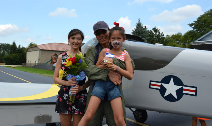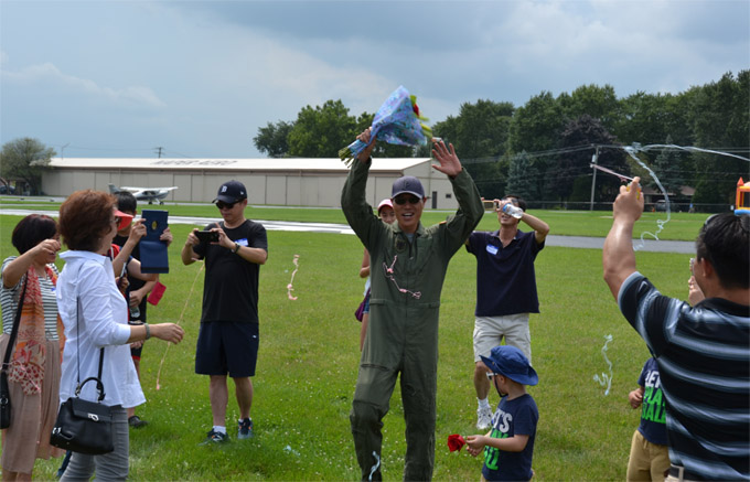 胡亮的亲友们有感于胡亮对儿时梦想的执着与成就,自发组织起本次首飞庆功仪式。活动当天,胡亮飞行俱乐部的老美“飞友”们驾驶自家私人飞机前来,社区邻居开着老爷车过来参观,还有芝加哥各界华人朋友们带来丰盛美食还有卡拉OK演唱,为胡亮喝彩。一场中西合璧的庆祝仪式,别开生面。