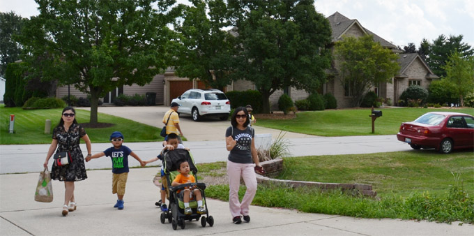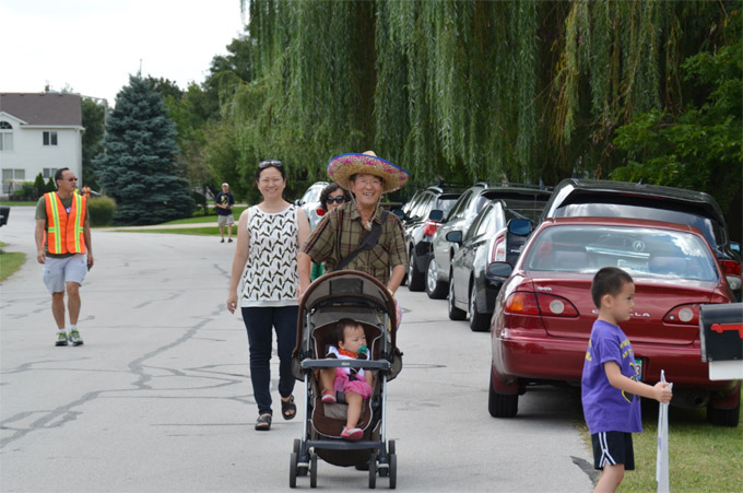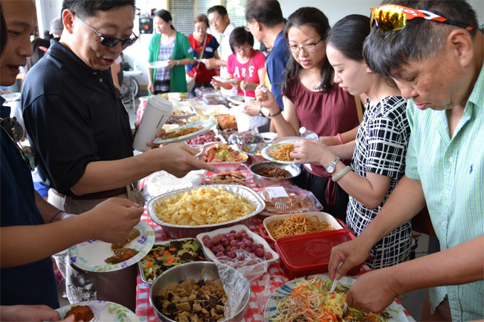 胡亮家所在的社区,是西郊瑞柏市(Naperville, IL)一个特殊的飞行俱乐部社区,大多数住宅除了车库还有飞机库,后院由社区住户共用的轻型飞机跑道。胡亮家的机库,当天成为亲友欢聚的庆功场所,各界华人朋友带来自家拿手好菜与大家分享,主人家则特别定制了两头烤乳猪,一派节日般的氛围。