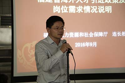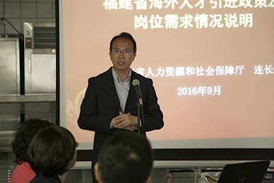 福建省院士专家办公室主任连长梠先生则为大家介绍了福建省人才引进优惠政策及福建省海外高层次人才需求。福建省推出了“百人计划”优惠政策,将给予符合条件的人才资金,技术以及生活待遇方面上的支持,欢迎和鼓励广大海外人才到福建就业创业。