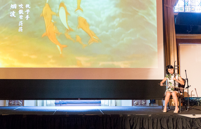 晚会文艺演出部分由一曲独具中国传统特色的二胡独奏拉开序幕。Loyola大学的张雨晴同学演奏的《大鱼》为晚会平添了浓浓的中国味,紧扣晚会欢庆传统佳节的主题。芝加哥艺术学院中韩学生事务办公室的领导CheeyonCha代表校方向中国同学们献上了中秋祝福。CheeyonCha表示“感谢SAICCSSA为这次晚会所做的准备。并想借助这个晚会正值中国中秋节之际,向本校的中国学生送上来自学校问候与祝福。”