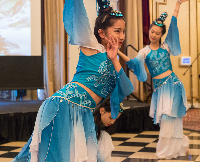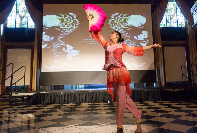 在接下来的文艺表演中。来自芝加哥地区九所不同高校的同学们为现场观众献上了多台精彩的演出。由芝加哥大学冯心怡同学带来的独舞《雨中花》,清新优雅,同样中国味十足。IIT蝶舞墨韵舞团的舞蹈《楚云深》轻盈优美,向大家展示中国传统舞蹈的独特魅力。最后,芝加哥艺术学院的两位人气手Tom&Jenny演唱的歌曲《EmpireState of Mind》活力十足,惊艳全场。将整场晚会推向了高潮。
