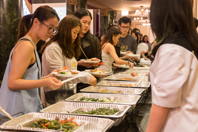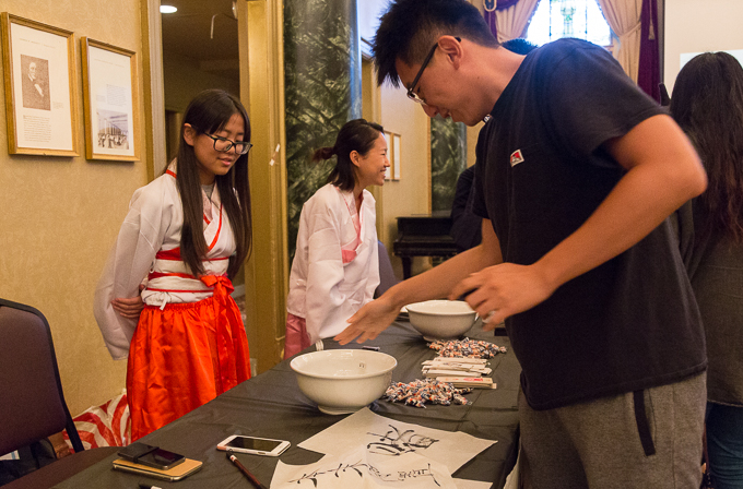 主办方为同学们准备了可口、丰富的中秋晚宴。麻婆豆腐、芥蓝炒牛肉、宫保鸡丁,还有中秋必备的各色月饼。同学们在品中秋美食的同时还能参与现场的多个游戏活动。写书法、掷骰子、写中秋祝语。同学们都十分热情地参与到晚会之中,气氛和谐欢快。同时,主办方还为现场观众准备了多个精彩的奖品。其中的大奖为9月25日即将上演的马頔《南山南》演唱会VIP门票两张。