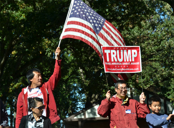伊州共和党川普竞选委员会主席、伊州议会第68区众议员约翰卡贝罗(John Cabello),威尔郡共和党代表杰克麦克勒雷(Jack Mclnerney),湖郡共和党竞选委员会代表、日裔居民罗瑞斯由蔻雅玛(Loris Yokoyama)等嘉宾出席了当日的活动。特别值得一提的是,当天与会的川普华裔支持者,还包括从拉斯维加斯、佛州、密苏里远道而来的北美华人川普助选团代表。