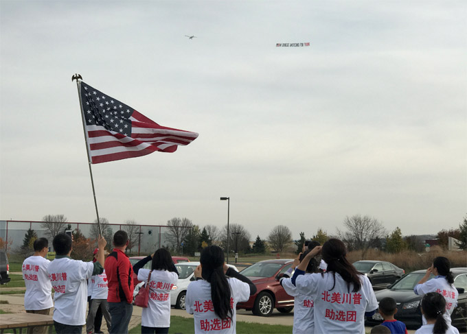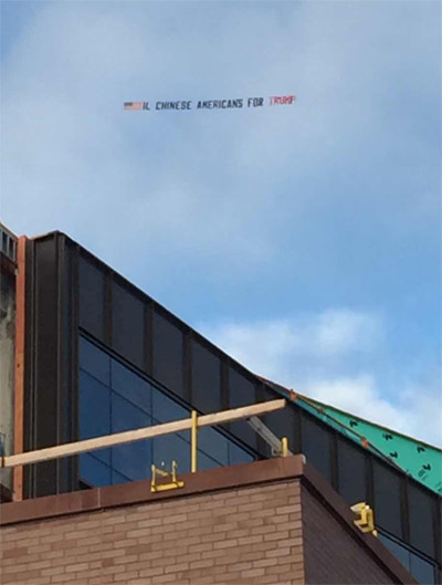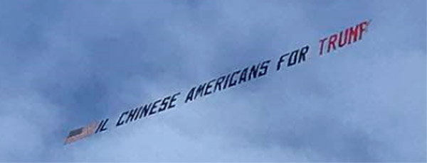 今年的总统选举史无前例,今年全美各地华人参与民主政治的热潮也是史无前例。支持共和党派候选人川普的全美各地华人,除了全美各地登门拜票行动,华人自发筹资、租飞机拉挺川横幅上天的活动已在全美30多个州举行。