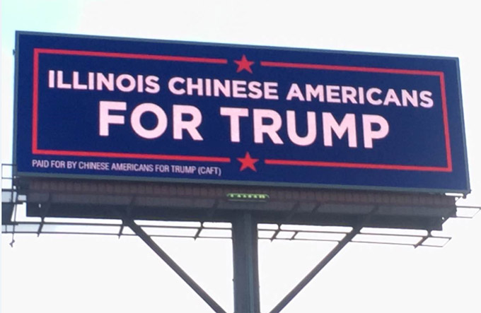 据北美川普助选团芝加哥地区负责人“北美崔姐”(Grace Cui)介绍,在芝加哥高速公路电子广告打出“伊州华人支持川普”广告(近$2000),租用飞机拖横幅上天(共3小时收费$1300),全是由支持川普的华人捐款集资,并且在两三个小时内凑足款项,余额还可以转发其他州的挺川活动。北美崔姐表示,芝加哥乃至整个伊州虽然都是民主党的票仓,但芝加哥地区川粉们依旧决定发起本次活动,这是对全美各地华人挺川行动的响应,也是表现出芝加哥地区川粉们直捣民族党老巢的决心和气势,在深蓝的伊州一飞冲天,高调宣誓华人参与民主政治的决心,显示华人维护自身利益的坚定信念。
