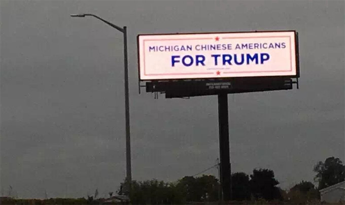 据悉,麦迪逊的飞机横幅,花费$1700多,密沃基飞机横幅花费1300多,还有在麦迪逊投放高速公路广告牌的2000元,这些开支都是当地华人自发捐款,并且在短短6小时内凑足资金,剩余资金还将用于支援其他州的华人助选团。在民意摇摆州的威斯康辛,当地华人租用的高速公路广告牌,挺川广告将一直持续到11月8日总统大选日。在大选的最后冲刺阶段,包括伊州、威斯康辛、密西根等全美各州华人还自发筹资,租用高速公路广告牌挺川。