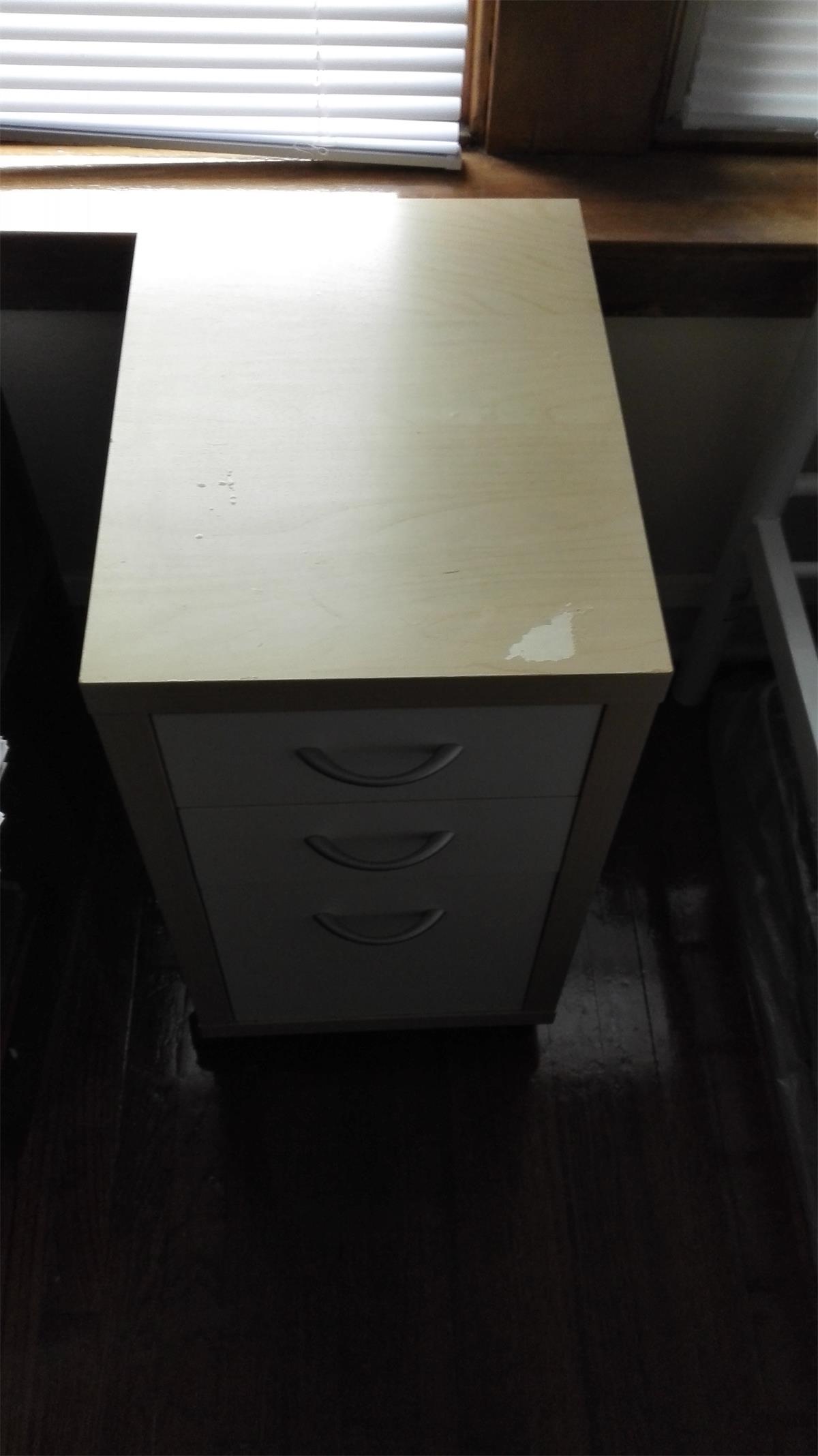 三个抽屉的塑料储物柜,$10.