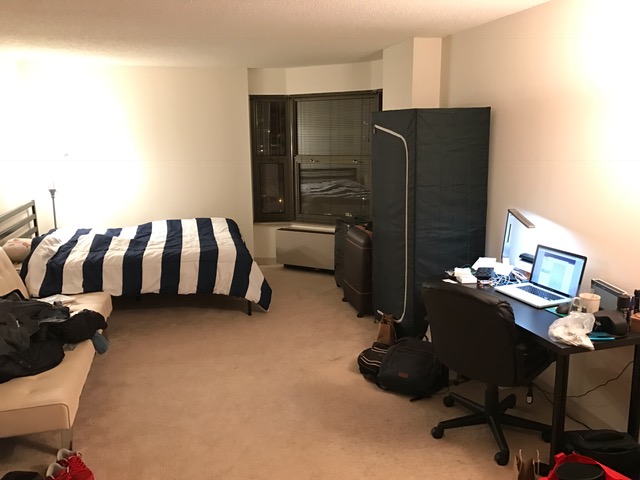 因为本人要转学的原因,必须要转租出去现在住的公寓。地段很好,8 w chestnut st. 在state和chestnut的交界。靠近地铁红线Chicago站(走路两分钟)离密歇根大道仅三条街,适合uic,loyola,depaul的学生和即将来芝加哥工作的你。周边很多好吃的非常热闹,从窗户可以看到密歇根湖。现在有一个室友人很好喜欢摄影。他住在卧室我住在客厅。(客厅很大!!!)而且有家具,要是想收的话可以卖给你。房租俩人平分每个月859刀,再加水电网费。今年12月到明年7月底结束,完了可以续租。