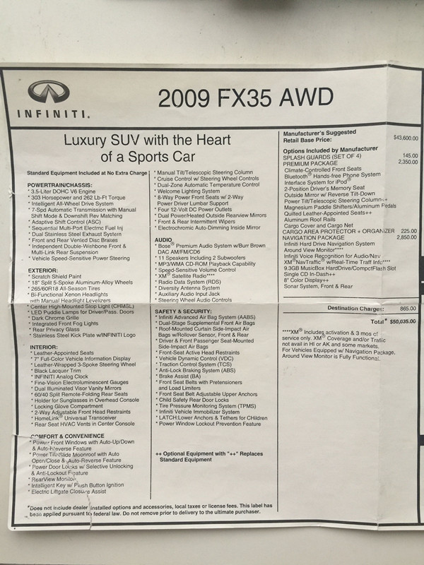 » 回国卖车 09 INFINITI FX35 AWD 四驱顶配无事故