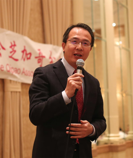洪磊总领事当天不顾旅途劳顿,刚从底特律飞回芝加哥,就直接参加本次盛会。洪磊总领事表示,他到任芝加哥时间不长,但早就听闻旗袍会声名远扬。在今年大芝加哥华侨华人于市中心举行的庆祝中国国庆67周年升旗典礼上,亲眼目睹旗袍佳丽们的风采,大家以旗袍展现东方女性之美,为弘扬中国传统文化,促进中美双边人民的交流做出了重要贡献,他祝愿本届年会取得圆满成功。