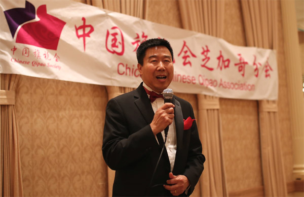 中国旗袍会芝加哥分会会长王坚,当天特别感谢芝加哥各界朋友对旗袍会的关注支持,感谢旗袍佳人们对各项活动的积极参与辛苦付出。王坚表示,旗袍作为中国女性的传统服饰,更是中国传统文化的一部分。今日的旗袍不光带有一种传统美的魅力,还彰显出一种时尚的元素,这使得越来越多的人们更加热爱旗袍。