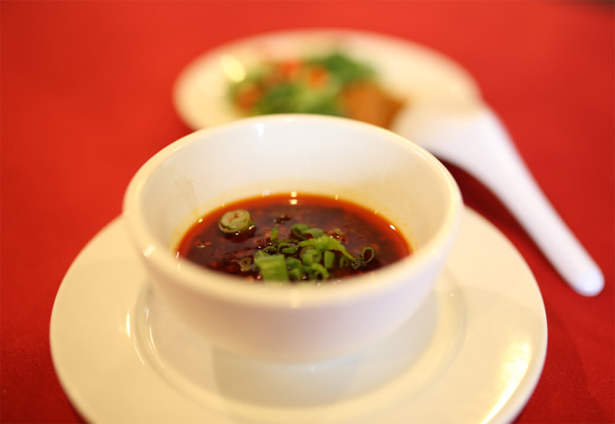 干碟蘸料附着在食物上,直击味蕾,这样的口感是十分锋利的,入口先是蘸料的横冲直撞,等食物的汤汁在口中爆裂开,蘸料的锋芒就慢慢退下,鲜浓的口感开始蔓延。等到吞下之后,从口腔到喉头已然是被鲜香缠绕,最先入口的那一个冲刺的辛辣,在舌头最前方隐隐约约跳跃。这是会上瘾的,不断想要尝试蘸料最开始入口的冲撞与后来的消散,于是一轮又一轮,难以停下。那一刻情不自禁用四川的方言来称赞,巴适得很!