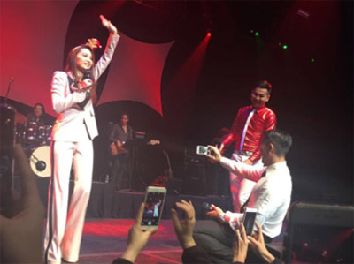 在马蹄铁赌场的圣诞眼演唱会,她就戴着自己亲手设计的珠宝首饰。香港本土出生的徐子珊,当天唱的却多是国语名曲。《你知道我在等你吗》、《我的歌声里》,《对面的女孩看过来》,徐子姗的演唱,显示出香港歌坛的实力。徐子珊当天还打破既定的演出安排,走下舞台与观众席问候互动,邀请观众上台合影,展现港姐的亲和力。