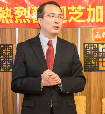 洪磊总领事为香港华协会的成员们送上了新春的祝福,他说到,春节是中华民族最重要的节日,要在这样一个特殊的时刻里给香港会拜年。并希望香港会与总领馆继续保持互动与友谊。洪磊总领事在回顾到任芝加哥以来与香港会的合作时表示,香港会一直是一个爱国、爱港的团体。他强调,祖国和香港是一家亲,只有祖国好,香港才会好。余鹏副总领事则是风趣地用粤语向大家祝福恭喜发财。