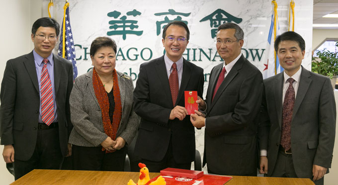 洪磊总领事为华商会送上了象征吉祥的新年红包。他表示,很感谢华商会一直以来为繁荣中国城与中国社区所作出的贡献。华商会在芝加哥华埠有着不可取代的地位,希望借助中国新年的良好契机拜访华商会。与华商会一起庆祝新年,并保持良好关系,一同推动芝加哥华人社区的繁荣。