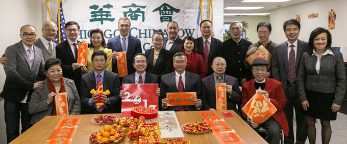 芝加哥侨学网报道】中国驻芝加哥总领事馆洪磊总领事一行人新春团拜,1月24日进入第二日。当日,洪磊总领事一行人首先来到了位于芝加哥北华埠的华人互助会、潮州同乡会和协胜工会,为北华埠的侨社们带去了新春的祝福。