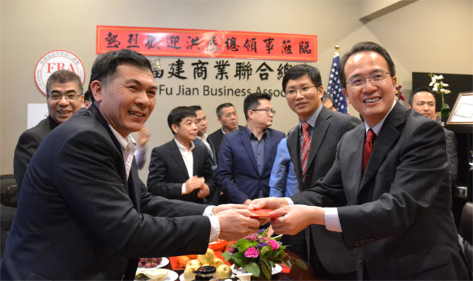 商会荣誉顾问倪举凌先生,当天刚下飞机就赶到商会会所欢迎洪磊总领事一行。倪举凌表示,他在中美双边都有生意,经常往返中美之间,祖国繁荣富强、中美友好合作是大家发自内心的愿望。福建乡亲们团结、爱国,在支持总领事馆工作方面,大家将一如既往,走在最前面。(图文: