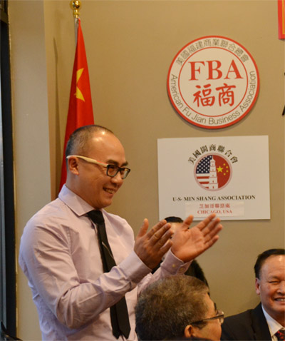 洪磊总领事发表热情洋溢的致辞。洪磊指出,在他到任芝加哥以来的首次新春团行程中,他看到了很多传统侨团的文化传承,而在福建商会则是感受到年轻、现代与开拓进取。商会成员们事业有成,关心祖国建设,促进中美友好,前不久淮扬菜赴美餐饮文化交流,正是郑会长的大力支持下得以